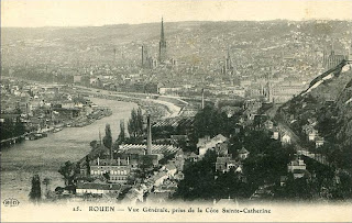 Lowry and Jan Gabrial stayed in Rouen in 1934 following Jan's abortion in Paris. The trip was part of their reconciliation after the arguments in Paris. Their reconciliation was so ecstatic that after when they quarrelled one would say "Rouen" to remind them of how happy they could be. (Gordon Bowker Pursued By Furies Pg. 175).